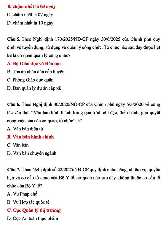 5. Nghị định số 170/2025/NĐ-CP ngày 30/6/2025 của Chính phủ quy định về tuyển dụng, sử dụng và quản lý công chức.