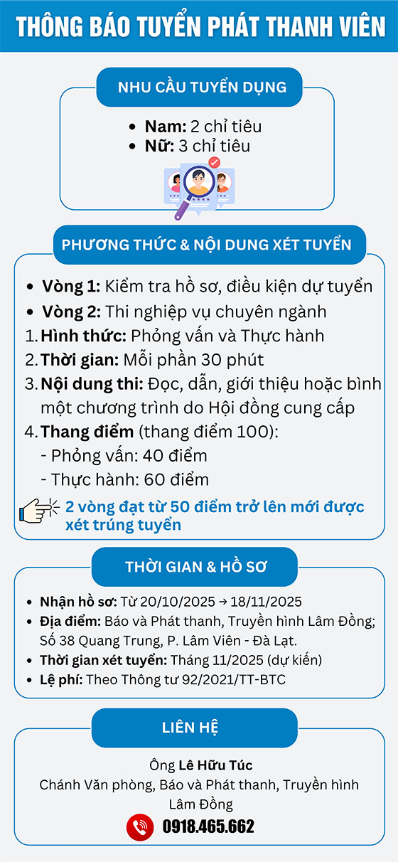 Báo và Phát thanh, Truyền hình Lâm Đồng thông báo tuyển Phát thanh viên