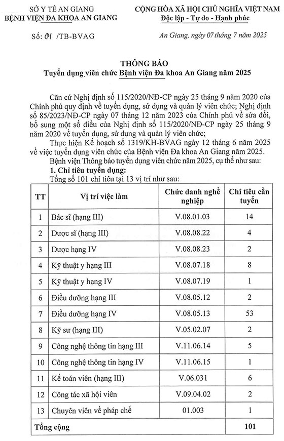 Bệnh viện Đa khoa An Giang tuyển dụng viên chức năm 2025