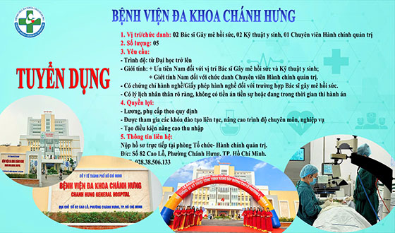 Bệnh viện Đa khoa Chánh Hưng thông báo tuyển dụng Bác sĩ, cụ thể như sau:
