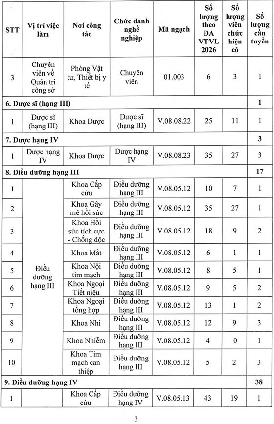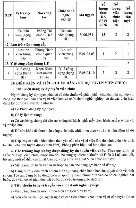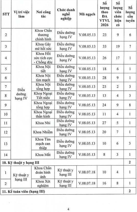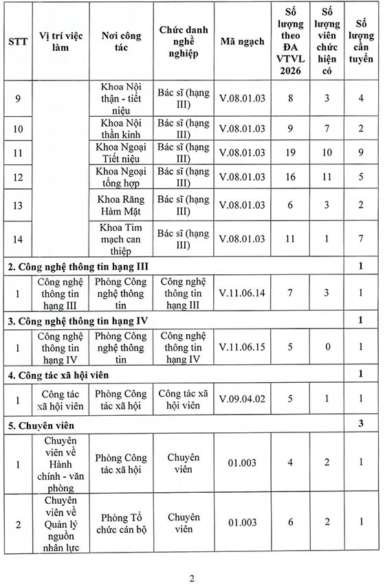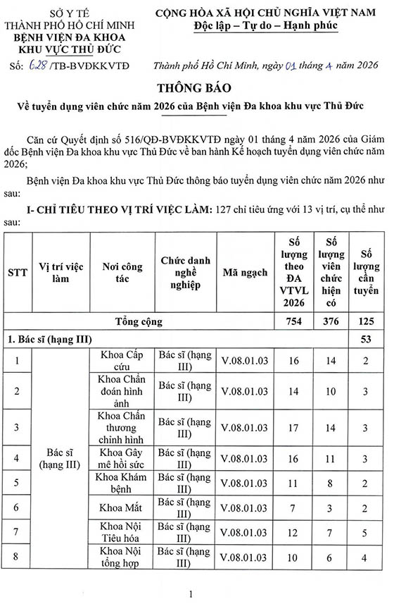 Bệnh viện Đa khoa khu vực Thủ Đức thông báo tuyển dụng viên chức năm 2026, cụ thể như sau: