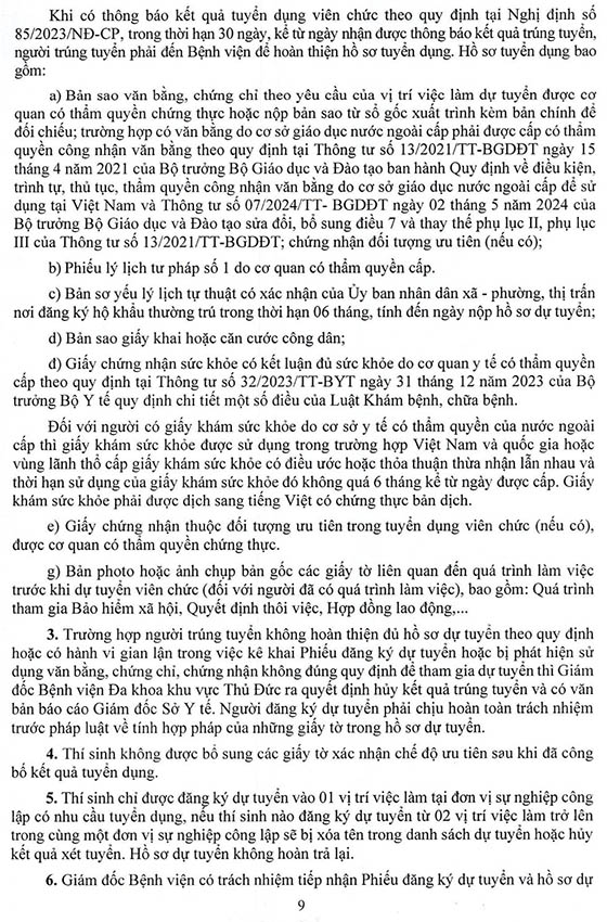 Bệnh viện Đa khoa khu vực Thủ Đức, TP. HCM tuyển dụng viên chức năm 2026