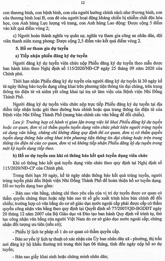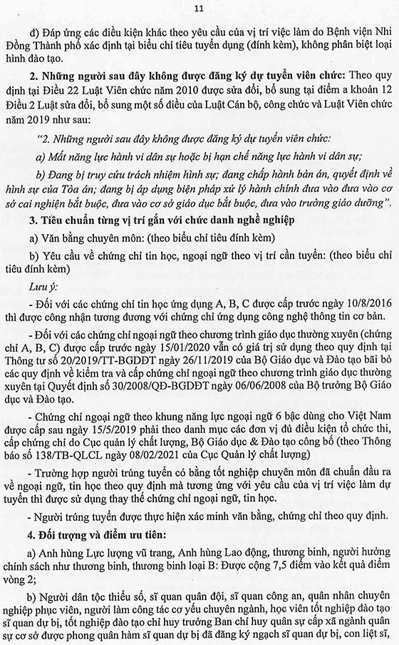 Trên đây là thông báo xét tuyển viên chức năm 2025 của Bệnh viện Nhi Đồng Thành Phố./.