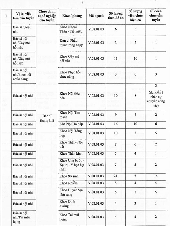 Bệnh viện Nhi Đồng Thành Phố thông báo tổ chức xét tuyển viên chức năm 2025 như sau: