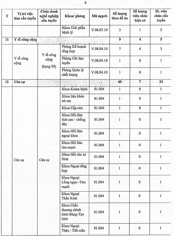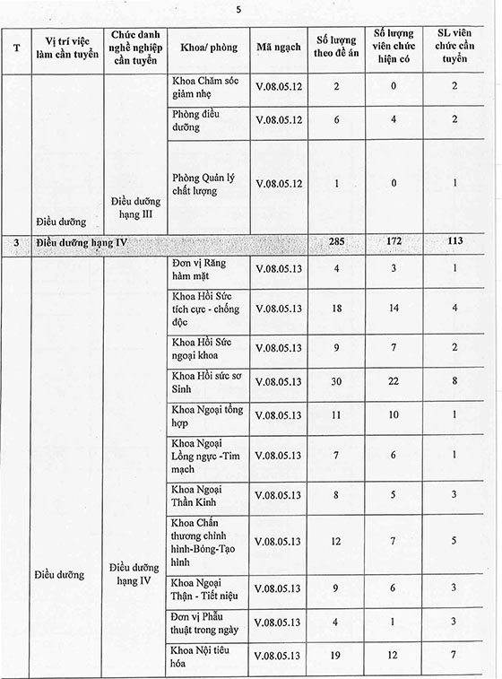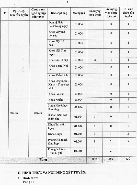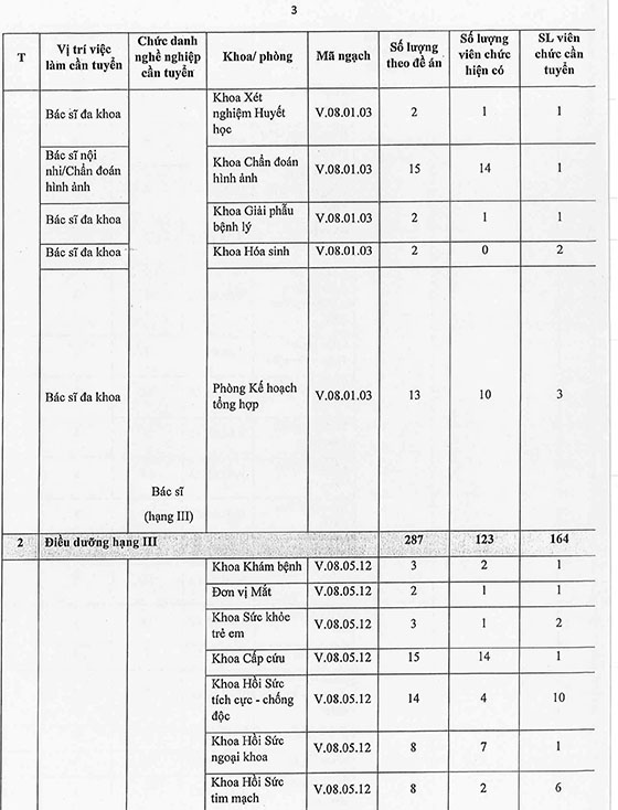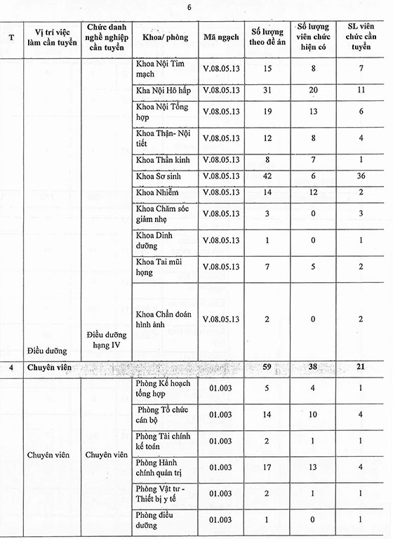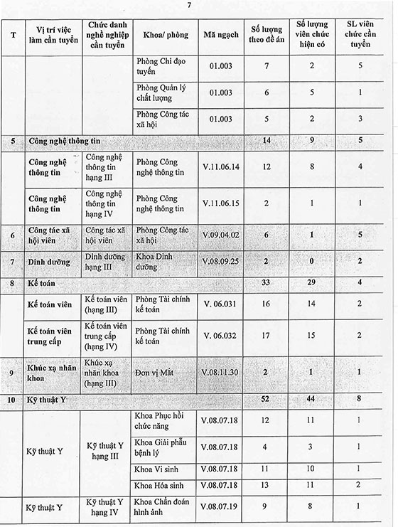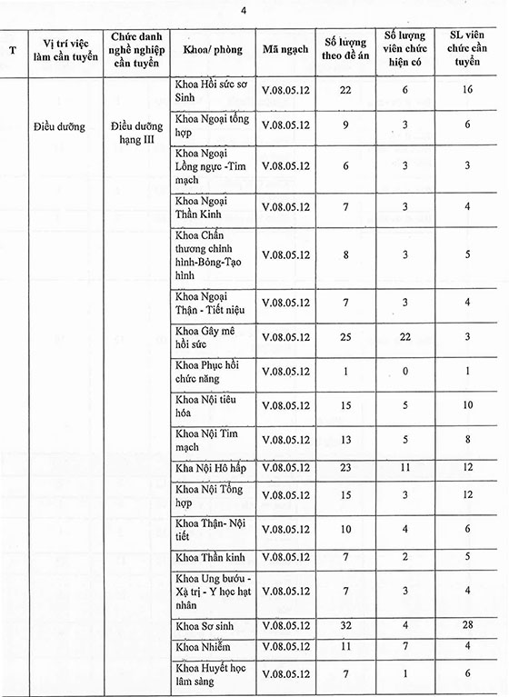 (Đính kèm Thông báo số 2499/TB-BVNĐTP; Biểu tổng hợp chỉ tiêu, cơ cấu điều kiện tuyển dụng viên chức)