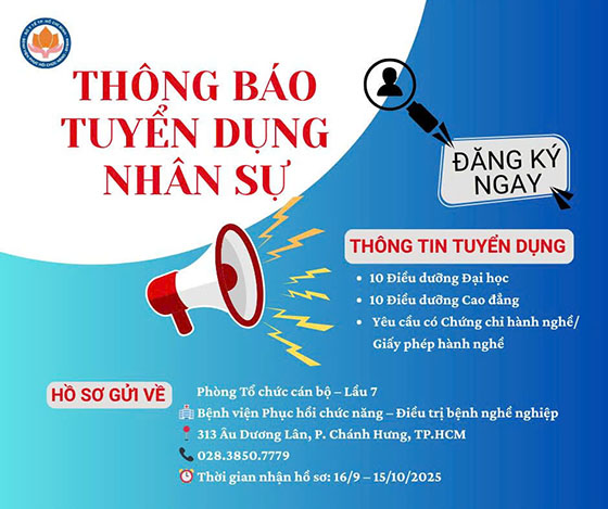 Bệnh viện Phục hồi chức năng – Điều trị bệnh nghề nghiệp tuyển dụng Điều dưỡng năm 2025