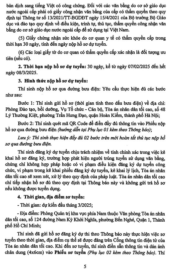 – Thời hạn nộp hồ sơ dự tuyển: 30 ngày, kể từ ngày 07/02/2025 đến hết ngày 08/3/2025.