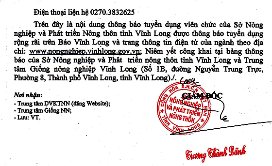 Trung tâm Giống nông nghiệp Vĩnh Long tuyển dụng viên chức năm 2023