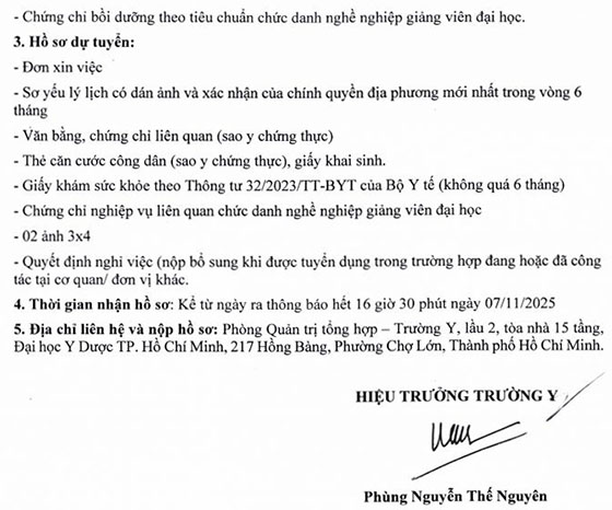 Trường Y – Đại học Y Dược TP. HCM tuyển dụng nhân sự