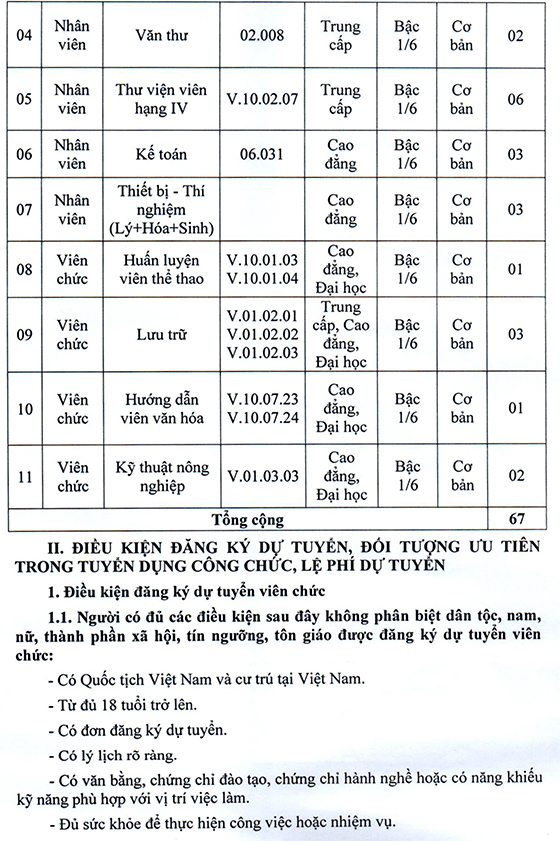 1. Số lượng tuyển dụng: 67 chỉ tiêu