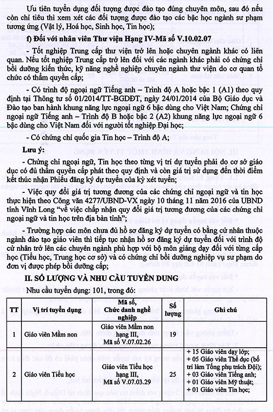 UBND huyện Long Hồ, Vĩnh Long tuyển dụng viên chức ngành GD&ĐT năm học 2023-2024, như sau: