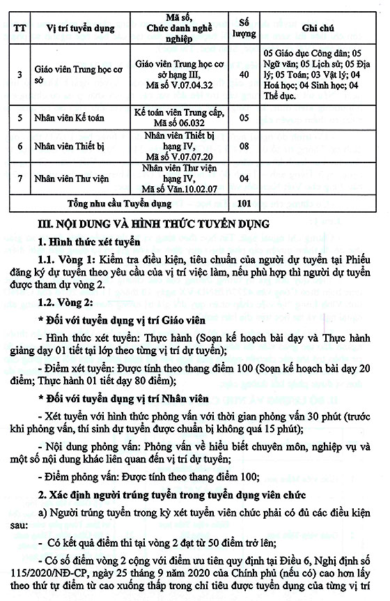 1. Số lượng tuyển dụng: 101 chỉ tiêu