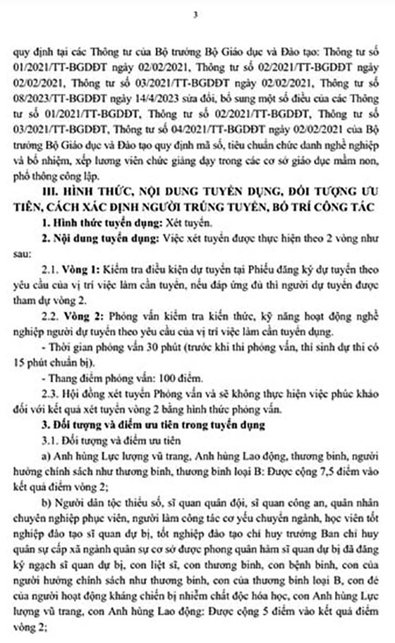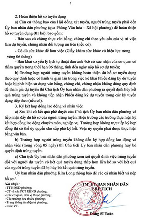 Về việc xét tuyển lao động hợp đồng chuyên môn, nghiệp vụ Nghị định số 111/2022/NĐ-CP của Chính phủ tại các trường mầm non, Tiểu học, Trung học cơ sở thuộc Uỷ ban nhân dân phường Kim Long năm học 2025-2026.