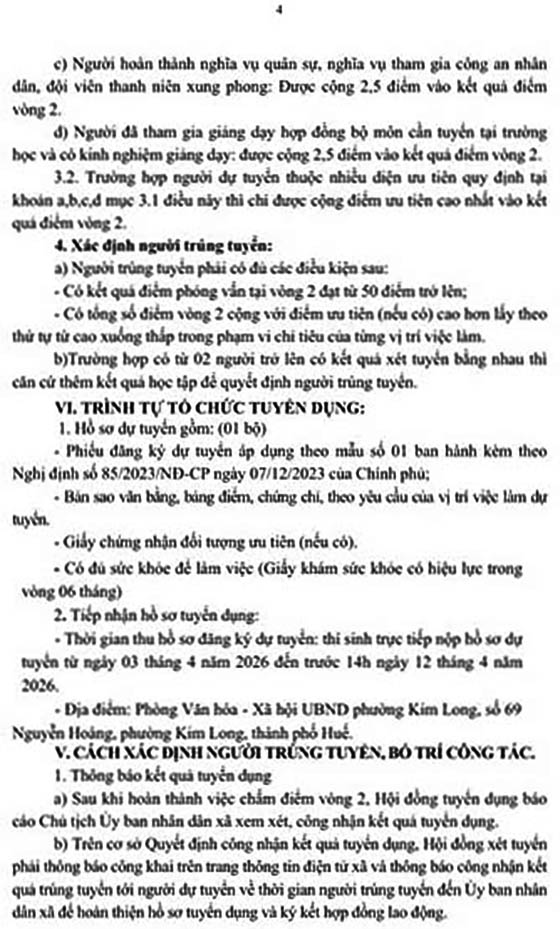 UBND phường Kim Long, TP. Huế tuyển dụng LĐHĐ năm học 2025-2026