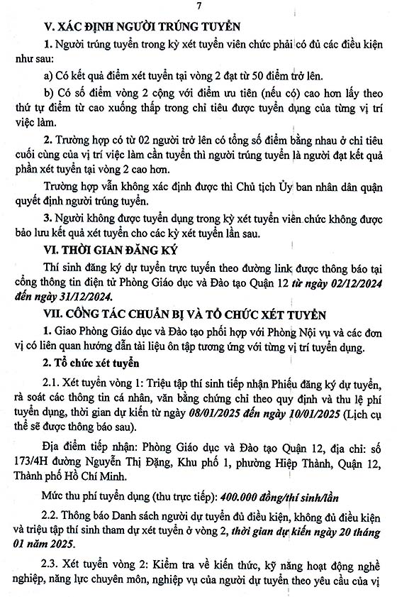 UBND Quận 12, TP. HCM tuyển dụng viên chức ngành GD&ĐT năm 2024 (Đợt 2)