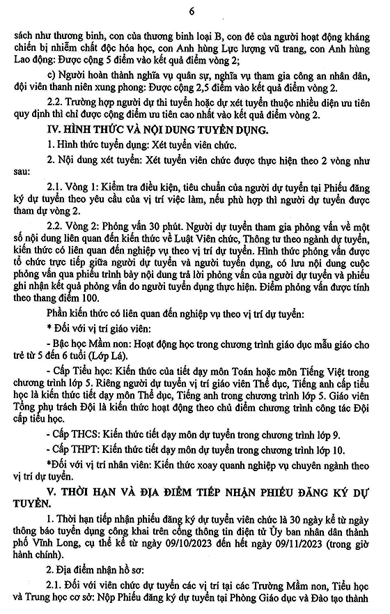 UBND TP. Vĩnh Long tuyển dụng viên chức sự nghiệp giáo dục năm học 2023-2024