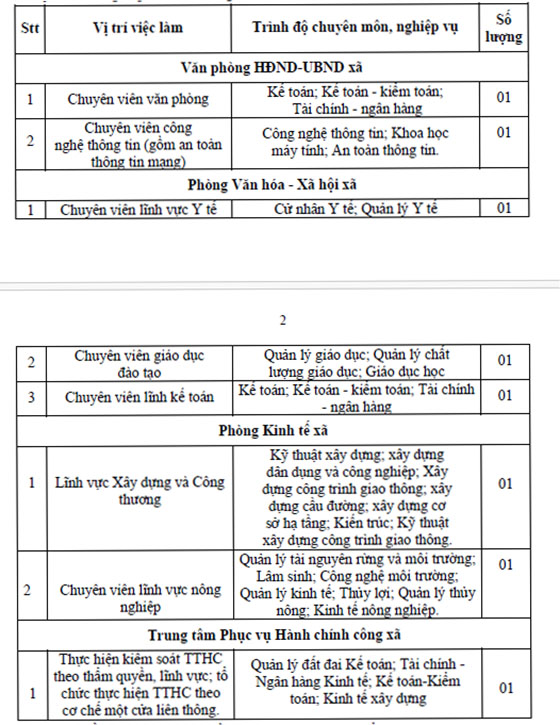 3. Số lượng tiếp nhận: 08 công chức có trình độ Đại học trở lên, bảo đảm chuyên môn, nghiệp vụ và kinh nghiệm thực tiễn, cụ thể như sau: