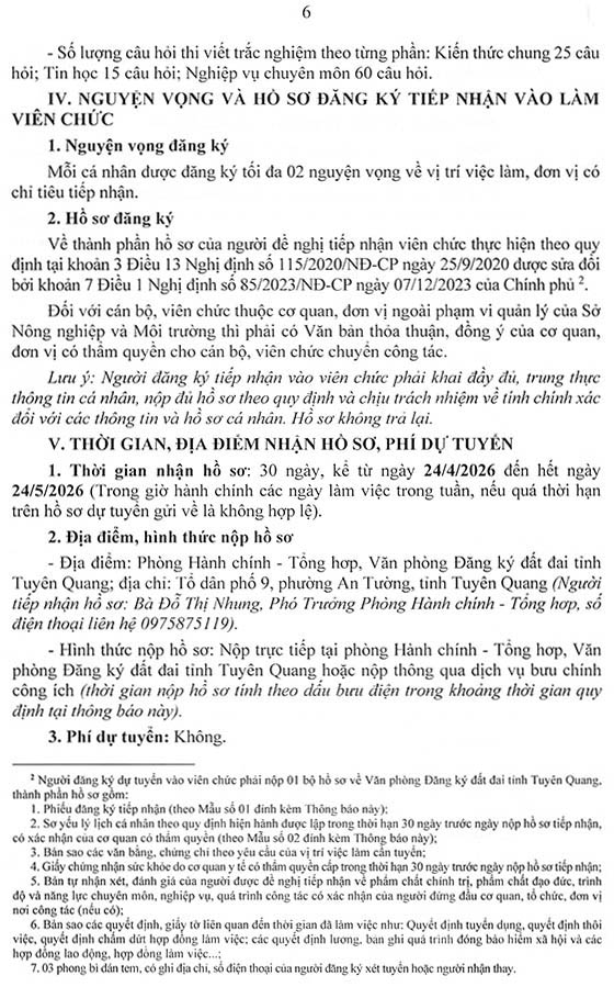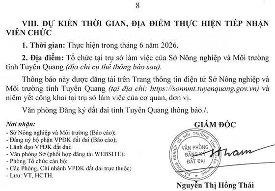 Văn phòng Đăng ký đất đai tỉnh Tuyên Quang tiếp nhận vào viên chức năm 2026 (đợt 1)